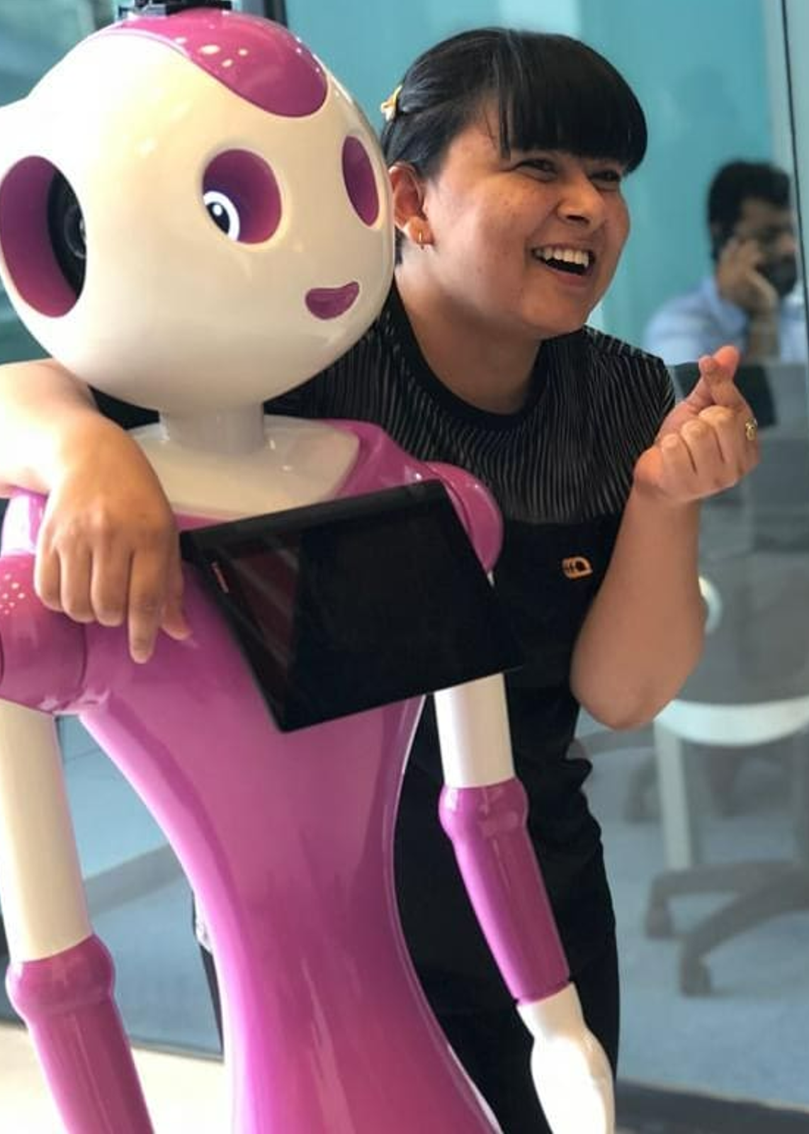 Our robots combine cutting edge technologies like AI computer vision, natural language understanding, speech synthesis; laser guided navigation and hosts a range of peripheral sensors to provide a superior customer experience
