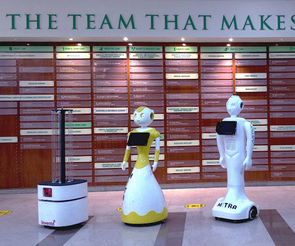Our robots combine cutting edge technologies like AI computer vision, natural language understanding, speech synthesis; laser guided navigation and hosts a range of peripheral sensors to provide a superior customer experience
